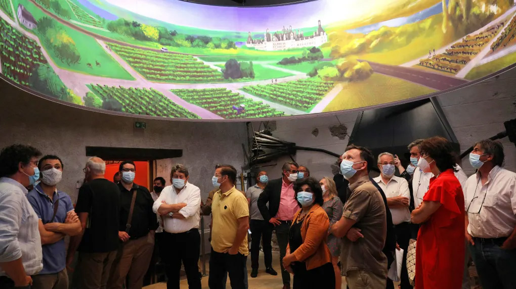 Imaginer l’évolution d’une exposition immersive pour la Maison des Vins de Cheverny fut l’occasion de repenser l’expérience visiteur au sein d’un dispositif déjà existant. Présentée initialement en 2020, l’installation retrace le cycle complet du vin de Cheverny, de la culture de la vigne jusqu’à son embouteillage et sa diffusion à l’international.